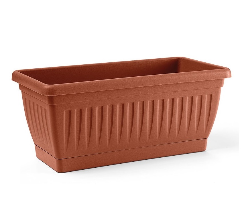 In polipropilene.Per uso esterno o interno.Ideale per piante da balcone come gerani surfine petunie ciclamini viole e per tanto altro ancora
